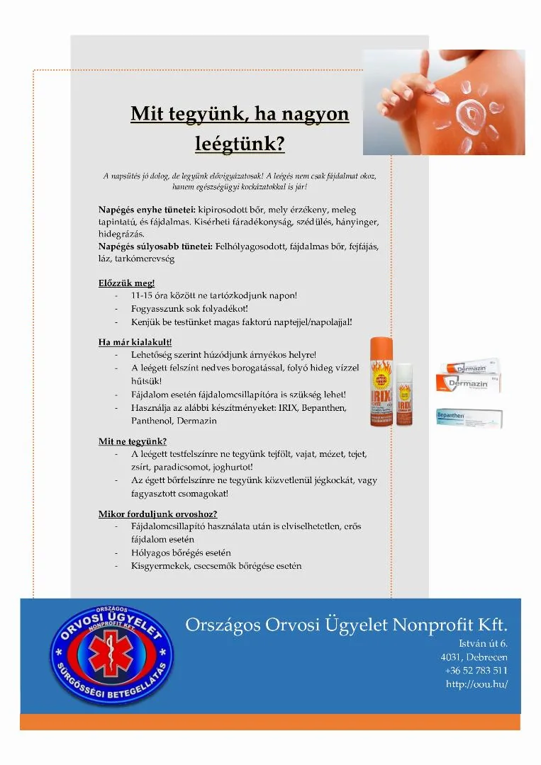 A napsütés jó dolog, de legyünk elővigyázatosak! A leégés nem csak fájdalmat okoz, hanem egészségügyi kockázatokkal is jár!