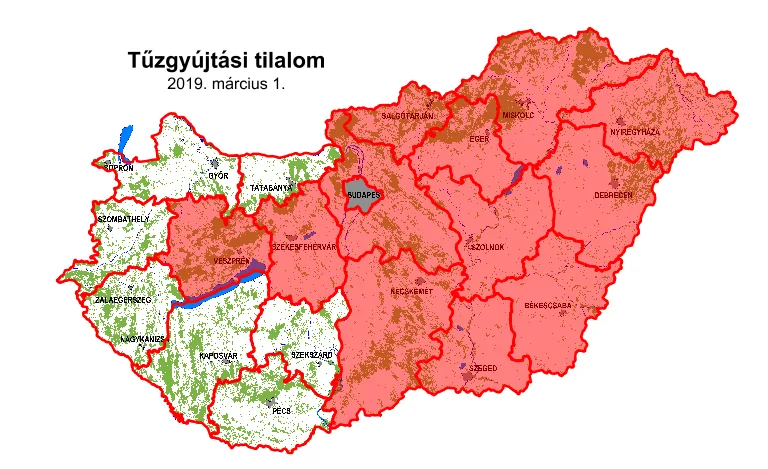Több megyében tűzgyújtási tilalmat rendeltek el, melyet 2019. 03. 15-el megszüntettek...