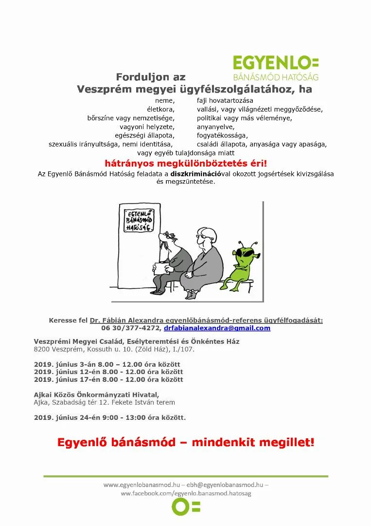 Egyenlő bánásmód ügyfélfogadás május