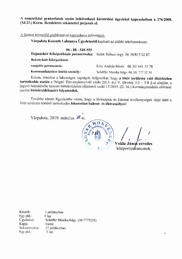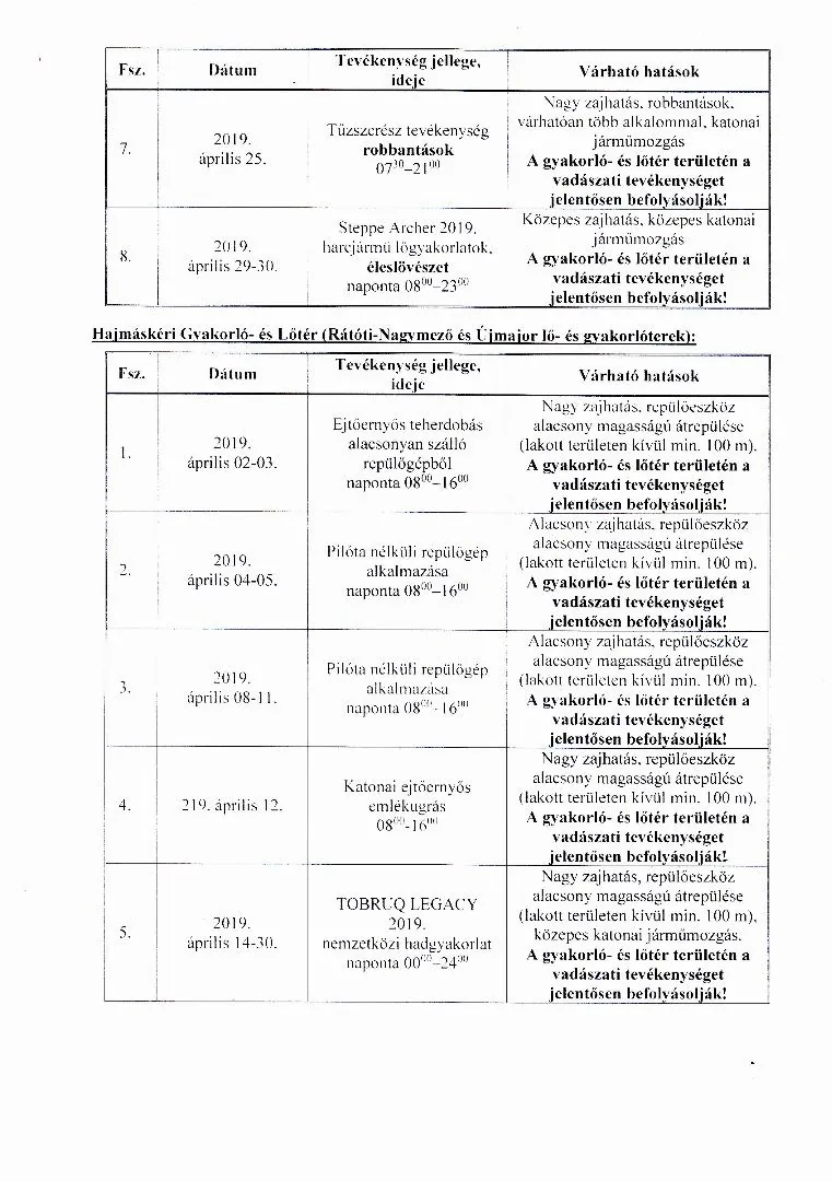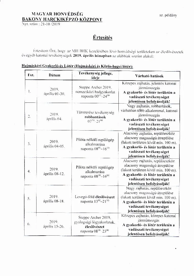 Lőtérértesítő Közszolgálati hír a MH Böszörményi Géza Csapatgyakorlótér Parancsnokság kezelésében lévő honvédségi területeken.
