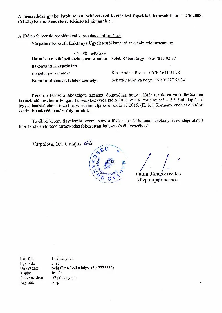 Lőtérértesítő Közszolgálati hír a MH Böszörményi Géza Csapatgyakorlótér Parancsnokság kezelésében lévő honvédségi területeken.